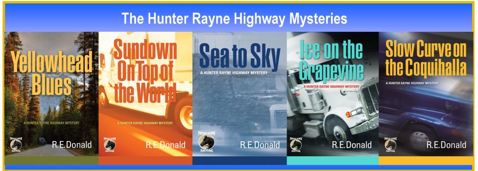 I too am hooked on this series. Found Slow Curve On The Coquihalla through Bookbub, and since I work as an office manager for a small trucking company it peaked my interest. I love all the characters and feel like I know them. Am reading Sundown on Top of the World now and it is even better, if that is possible. I feel like I am right there amidst the characters, and turn to Google every now and then to search out some of the places. I hope this series will continue for many books to come! I also agree with a previous commenter that finding out R.E. Donald is a woman makes it that much better! I read Slow Curve thinking it was written by a male author, so was pleasantly surprised!